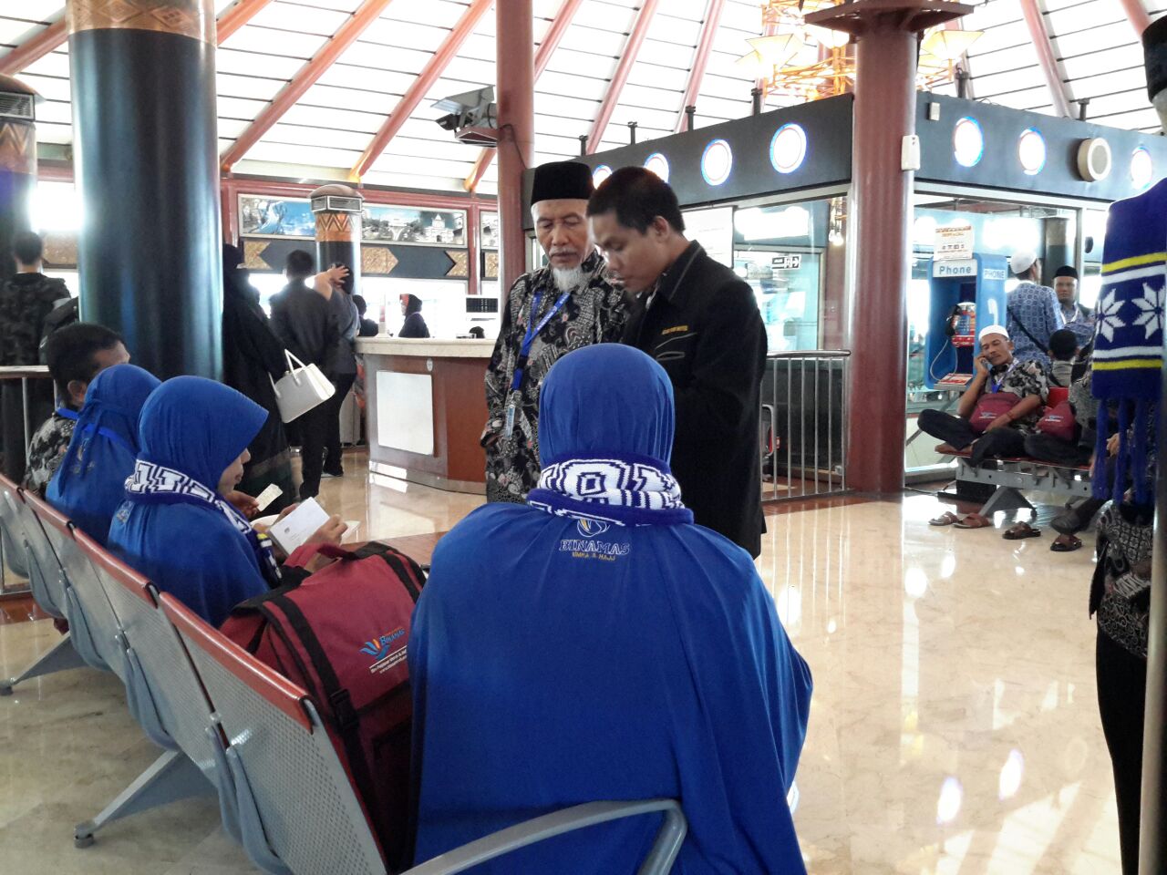 Tidak lama kemudian, ruang tunggu penuh sesak dengan seragam warna warni jama’ah umroh dari berbagai macam daerah.